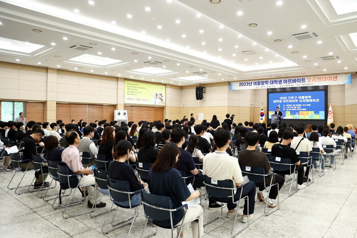 | ▲ 지난 여름방학 대학생 아르바이트 오리엔테이션 현장.(사진=구로구청 제공) |