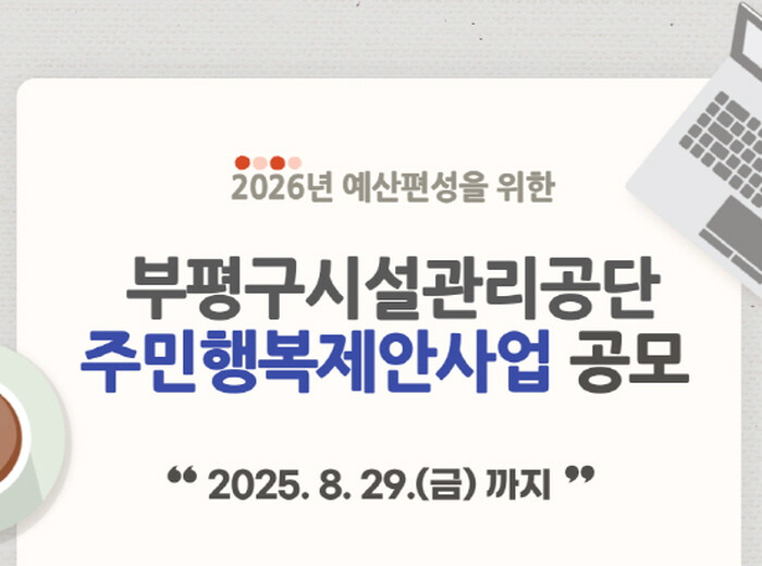 | 부평구시설관리공단 2026년도 예산에 반영할 주민행복제안 공모 홍보 이미지 |