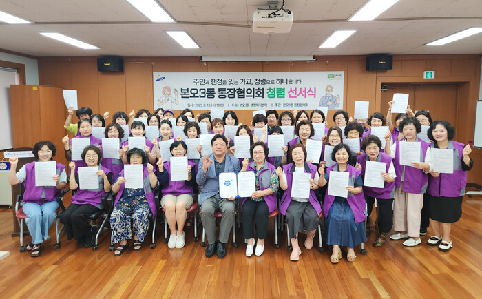 김윤자 본오3동 통장협의회장은 “통장은 주민과 행정을 잇는 가교이자 우리 본오3동의 얼굴이므로, 우리의 말과 행동 하나하나가 행정의 신뢰를 만들고 주민의 삶에 직접 영향을 준다”며 “청렴을 바탕으로 주민 목소리를 정확히 대변하는 데 최선을 다하겠다”고 말했다.