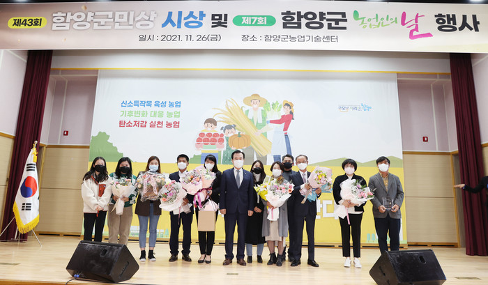 시상식에서 자립경영부문 이홍주(51·함양읍)씨, 창의개발부문 김유선(37·수동면)씨, 농촌활력부문 정연수(60·안의면)씨 등 3명이 함양군 ‘자랑스런 농업인 상’을 수상하는 영예를 안았다.