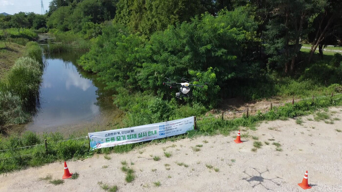 | ▲ 안산시는 하절기 감염병 매개체인 모기 발생을 선제적으로 차단하기 위해 드론을 활용한 모기 유충 방제를 진행하고 있다 /사진제공=안산시 |