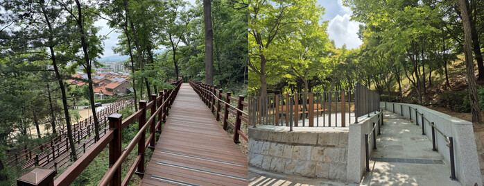 특히 산지형 공원 특성상 진입이 어려웠던 보행약자(장애인, 노인, 유모차 등)의 공원 접근성을 높이기 위한 무장애 데크길 조성이 핵심으로 진행됐다.