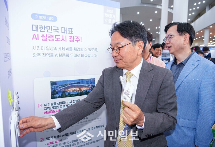 | ▲ 강기정 광주광역시장이 '제 60회 광주시민의 날'을 맞아 지난 5월25일 시청 1층 시민홀에서 열린 '정책평가박람회'에서 우수정책 선정을 위한 현장투표에 참여하고 있다./광주광역시 제공 |