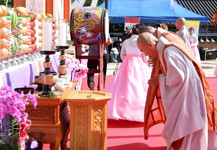 | ▲ 법오 주지스님, 무위사 수륙대제 봉행 / 강진군 제공 |