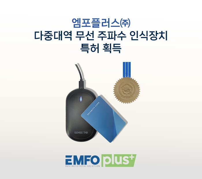 RFID/NFC 솔루션 전문 기업 엠포플러스㈜가 지난 2월, 하나의 RFID 리더기로 최대 세 개 대역의 주파수를 인식할 수 있는 기술을 개발하여 ‘다중대역 무선주파수 인식 장치’ 특허를 획득했다고 밝혔다.