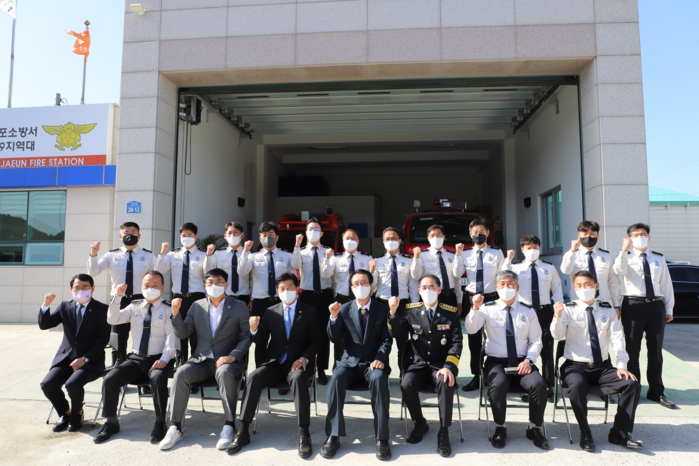 | ▲ 박우량 신안군수가 신안소방서를 방문해 격려했다.(출처=신안소방서) |