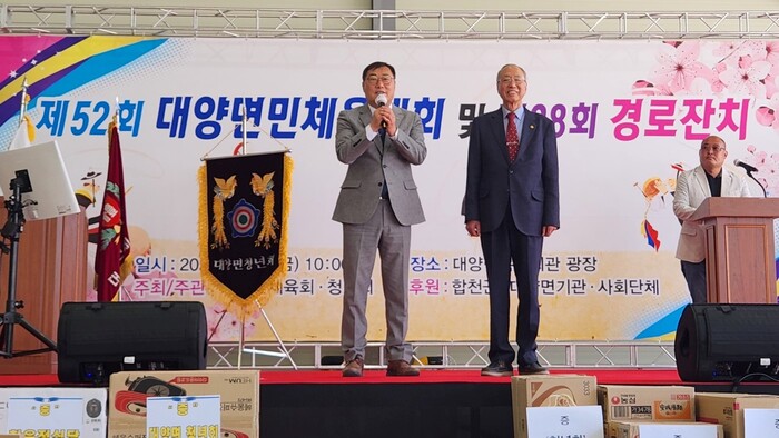 강성진 청년회장의 개회선언으로 본 행사가 시작됐으며, 나석규 대양면 노인분회장이 노인복리증진 및 체육문화발전에 대한 공로로 표창패를 받았다. 또 심경섭 전 대양면 노인분회장과 김재경 전 대양면 노인회 사무국장이 그간의 노고에 대한 감사한 마음을 담은 공로패를 받았다.
