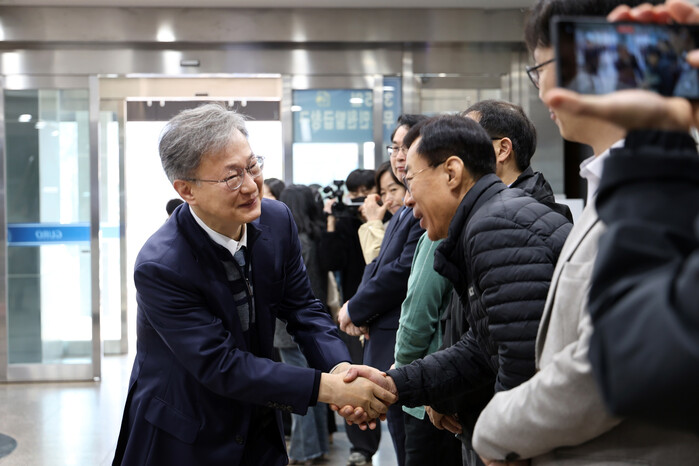 인수위원회 구성 등 별도의 취임 준비와 취임식 없이 곧바로 업무를 시작한 장 구청장은 첫 공식 일정으로 3일 오전 8시40분 구청 현관에서 출근하는 직원들을 일일이 맞이하며 악수로 인사했다.