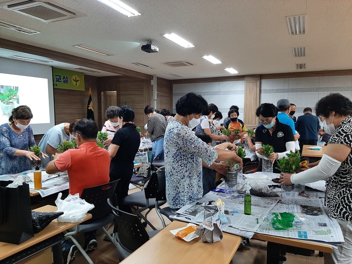 이날 환경체험교실에서는 좋은 마을만들기 영상강의와 재활용품 분리수거 요령 등 실생활에서 실천할 수 있는 탄소중립에 대한 강의에 이어 가야공예연구협회 박수현 강사와 함께 아이스팩(SAP)을 재활용한 방향제 만들기와 페트병 화분만들기, EM을 활용한 친환경 주방세제 만들기 등을 진행하였다.