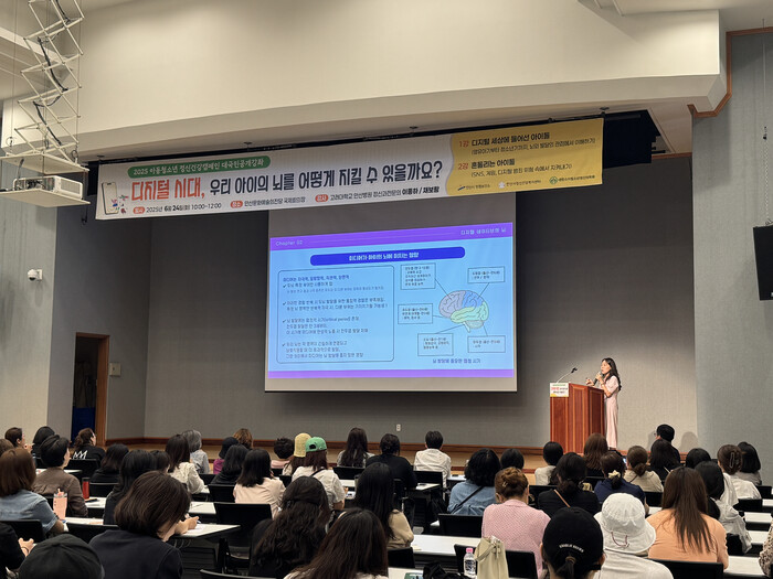 이번 공개강좌는 대한소아청소년정신의학회와 함께 디지털 환경에 익숙해진 아이들의 뇌 발달과 정서적 안정과 위험 요소에 대한 보호 방안을 부모와 지역사회가 고민하고 실천하고자 마련됐다.