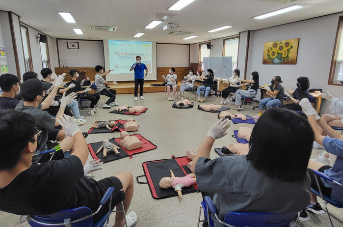 이번 과정은 응급 구조에 관심이 있거나 관련 진로를 희망하는 청소년을 대상으로 일상생활에서 발생할 수 있는 위기 상황 대처 요령, 심폐 소생술, 기도 폐쇄 ‘하임리 히법’, 자동 제세 동기(AED) 사용법 순으로 진행되었으며 실기와 필기 시험도 함께 진행해 참여한 모든 청소년이 자격증 취득에 성공했다.
