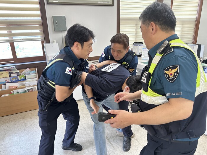 이번 모의훈련은 민원실에서 발생할 수 있는 폭언·폭행 등 위법행위로부터 방문 민원인과 민원담당 공무원을 보호하고, 신속·정확한 현장 대응능력 향상을 위해 마련됐다.