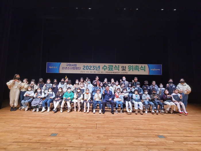 [구미=박병상 기자] 경북 구미시(시장 김장호)는 지난 4일(토) 오전 9시30분 구미문화예술회관 소공연장에서 수료단원, 신규위촉단원, 단원 학부모 등 100여명이 참석한 가운데 2023 구미시립소년소녀합창단 수료식 및 위촉식을 개최했다.