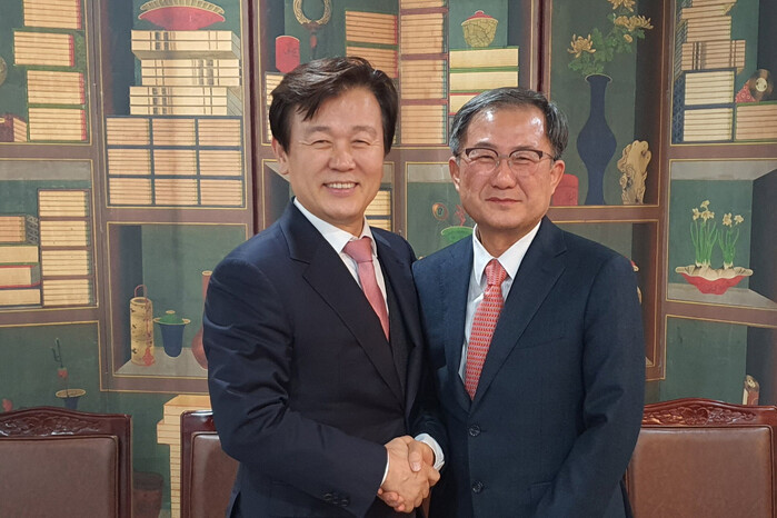 조규일 진주시장은 21일 김재홍 국립중앙박물관장을 만나 지역 현안에 대해 논의하는 시간을 가졌다.