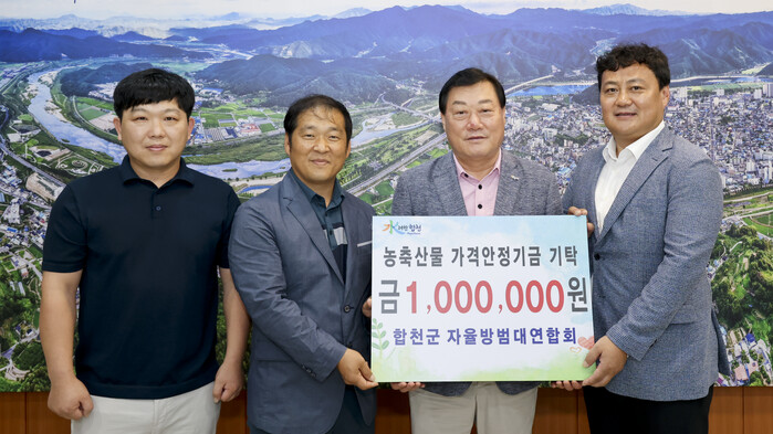 박형득 연합대장은 “수해로 인해 어렵고 힘든 시기를 보내고 있는 농민분들에게 조금이나마 도움이 되기를 바라는 마음에 합천군 자율방범대연합회 대원들의 뜻을 모아 농축산물가격안정기금을 기탁하게 되었다”고 전했다.