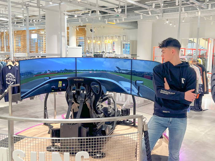| ▲ 영국의 레이싱 스포츠 선수 데릴 드 레온(Daryl DeLeon)이 영국 런던 셀프리지 백화점에 설치된 오디세이 아크 체험존을 즐기고 있다.(사진제공=삼성전자) |