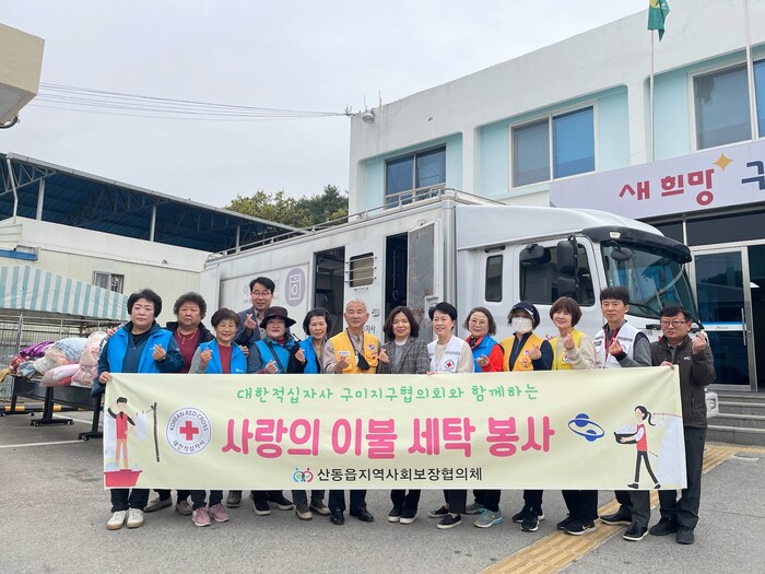 [구미=박병상 기자] 경북 구미시 산동읍(읍장 민명숙)은 지난 14일(금) 산동읍지역사회보장협의체(위원장 배남순)와 대한적십자사봉사회 구미지구협의회(회장 김기철)가 함께하는 이불 세탁 봉사를 실시했다.