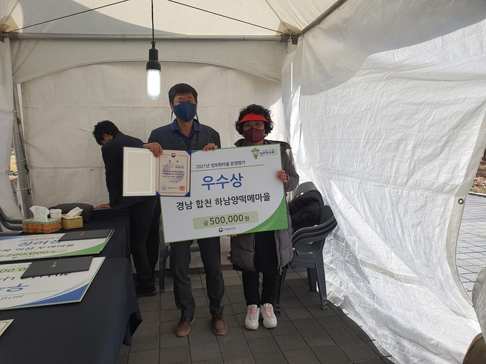 정보화마을 운영평가는 전국 260여 개 정보화마을을 대상으로 온·오프라인 판매실적, 소득 증가율, 자립운영 및 역량강화 노력 등을 평가하여 마을별 등급을 부여하며, 금번 평가에서 양떡메 정보화마을은 대상 마을 중 상위 10% 이내 마을에 부여하는 선도마을로 선정됐다. 또한 성영수 위원장은 정보화 마을 활성화에 기여한 유공으로 개인 표창까지 수상하는 영광을 안았다.