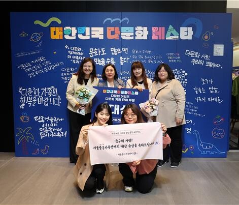 | ▲ 서울중구가족센터 직원들이 대상 받은 후 기념 촬영을 하고 있다.(사진=서울 중구청 제공) |