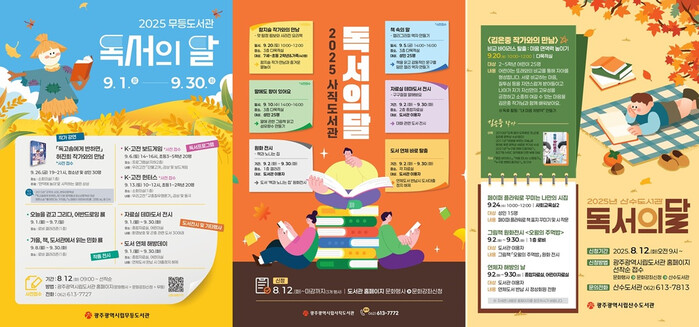 | ▲ 무등·사직·산수·디지털정보도서관, 독서의 달 맞이 프로그램 운영 포스터 / 광주광역시 제공 |