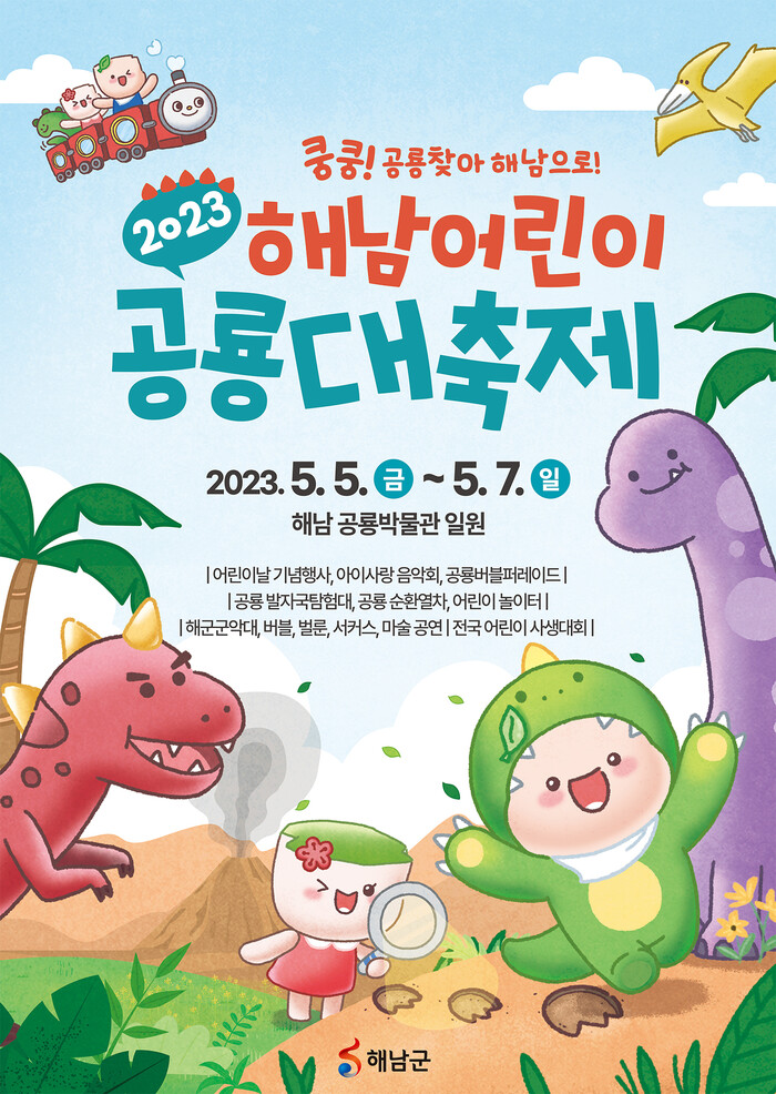 전남 해남군은 오는 5월 5일부터 7일까지 사흘간 해남공룡박물관에서 2023 해남 어린이 공룡대축제를 개최한다.