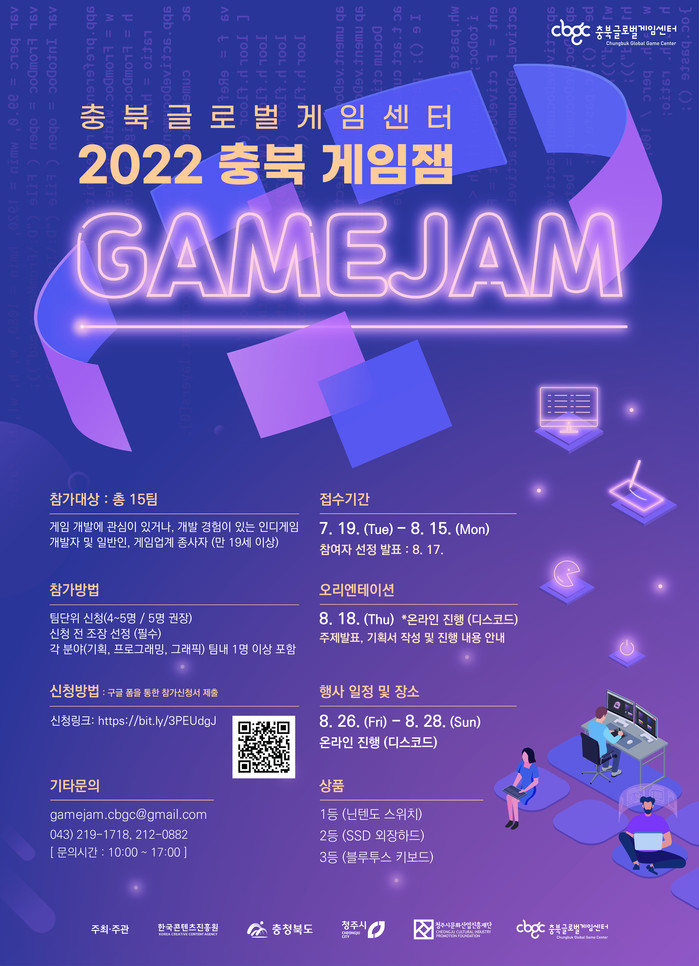게임잼(Game Jam)은 정해진 기간 동안 정해진 주제에 맞춰 게임을 개발하는 대회로, 이번 충북 게임잼은 8월 26일(금)~28일(일) 2박 3일 동안 온라인에서 펼쳐진다.