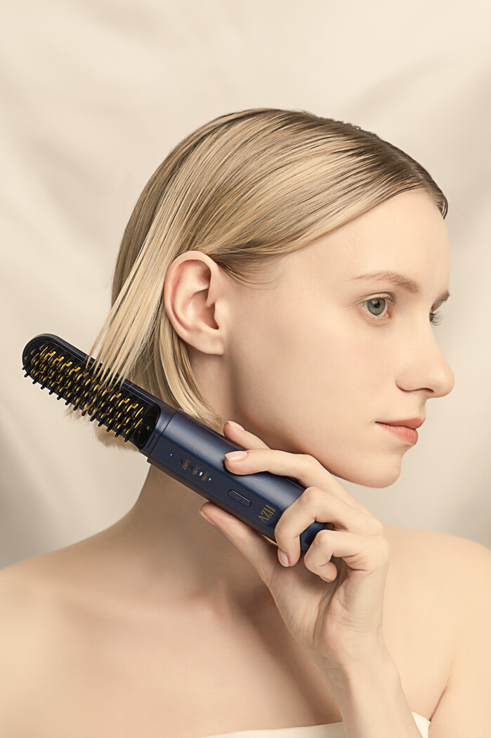 스트레이트 브러쉬 헤어 아이론은 헤어 스타일링에 어려움을 겪는 고객들을 위해 출시한 휴대가 간편한 브러쉬 타입 고데기로 간편하게 빗질만 해줘도 손쉽게 헤어 스타일링을 완성해준다.