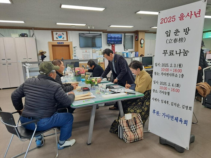 한편, 입춘방 나눔 행사는 3일(월)은 가야면사무소, 4일(화)은 가야농협에서 진행됐다.
