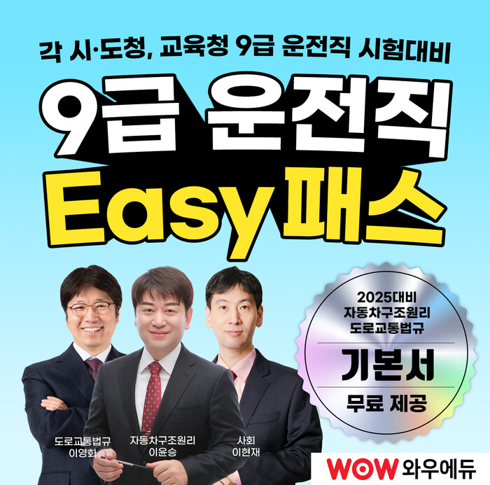 한편 와우에듀에서 2025년 9급 운전직 공무원 시험에 대비할 수 있는 ‘운전직 합격패스’를 선보였다.