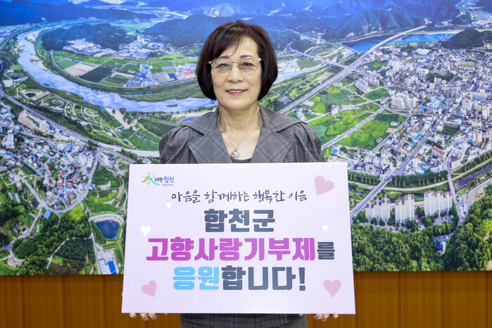 유무숙 회장은 “고향사랑기부를 통해 합천군 발전에 기여할 수 있어 뜻깊게 생각한다”며 “합천군 고향사랑기부제의 성공적인 정착과 함께 항상 합천을 응원하겠다”고 말했다.
