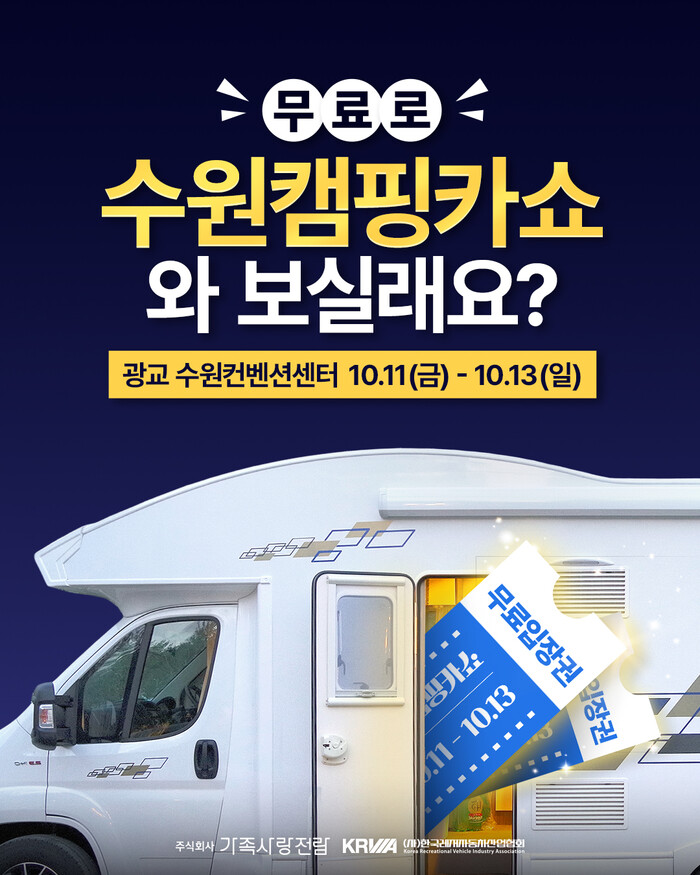 한편, 제5회 수원캠핑카쇼는 오는 10월 10일까지 공식 홈페이지를 통해 무료 입장권 예약이 가능하다.