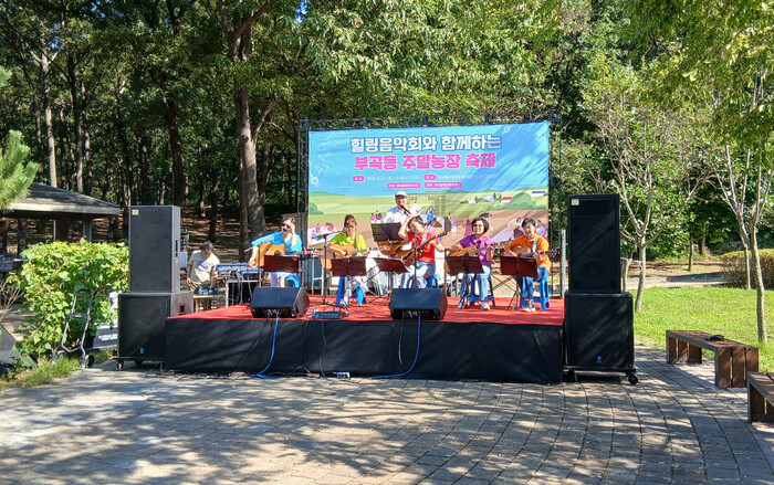 이날 축제는 주말농장 분양자와 지역 주민 80여 명이 참여한 가운데 통기타 및 색소폰 연주, 지역 가수의 축하 노래 등 다채로운 공연으로 행사가 진행됐다. 이번 부곡동 주말농장 축제는 주민 간 소통의 기회를 더 확대하고자 마련됐다.