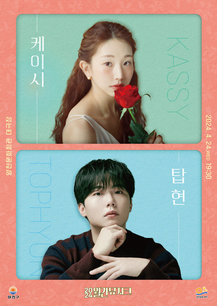 [시민일보 = 이대우 기자] 양천문화재단(이사장 천동희)은 오는 4월 24일, 양천문화회관 대극장에서 <월간뮤지크 : 케이시X탑현> 공연을 개최한다고 밝혔다.