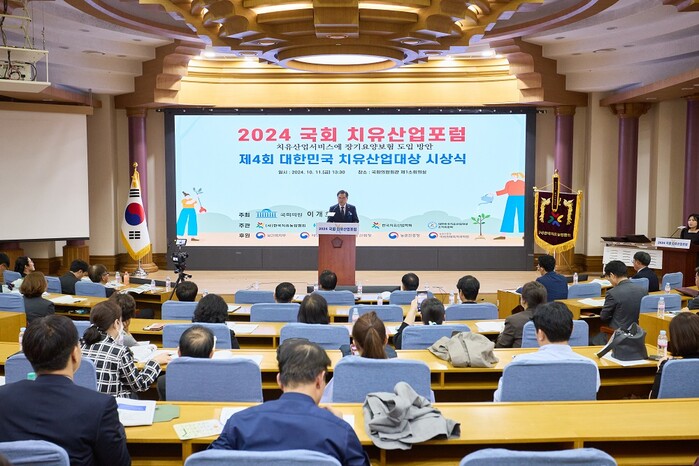 이개호 국회의원이 주최하고 (사)한국치유농업협회와 한국치유산업학회가 주관하여 11일 국회의원회관 제1소회의실에서 진행된 금번 ‘2024 국회 치유산업포럼’은 정부 치유산업 정책관 및 치유산업 전문가, 산림치유센터 및 해양치유센터 관계자, 치유농장주, 치유산업 단체 회원들과 함께 치유산업계의 큰 희망인 치유산업에 국가보험 도입을 위한 노인장기요양보험법 개정을 추진하는 자리로 마련됐다.