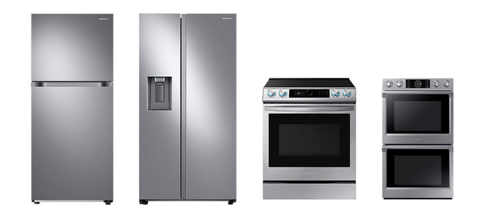| ▲ 삼성전자 주방가전이 미국 시장조사기관 JD파워에서 발표한 생활가전 소비자 만족도 평가에서 4개 부문 1위에 올랐다. (왼쪽부터) 각 부문 1위를 차지한 상냉동ㆍ하냉장 냉장고, 양문형 냉장고, 레인지, 빌트인 오븐 제품 이미지.(사진제공=삼성전자) |