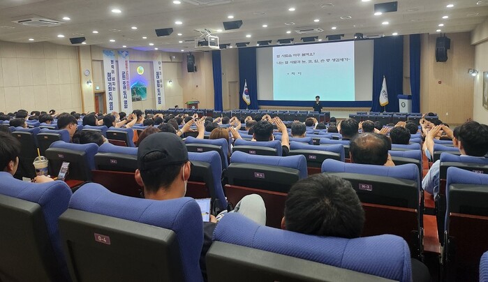 [영암=정찬남 기자] 전남 영암군(군수 우승희)이 지난 10~11일 군청에서 우승희 영암군수 등 공직자 500여 명이 참석한 가운데 ‘2024년 4대 폭력 예방교육’을 실시했다.