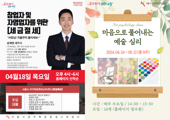 신청은 서울시 관악복합평생교육센터 홈페이지를 참고하면 된다.