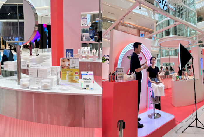 비바브놀은 자사 히알 수분 토너패드를 활용해, 메이크업 전 수분도를 올리는 방식으로 제품을 시연 활용했으며, 직접 사용해볼 수 있는 제품을 테스트할 수 있는 공간도 마련했다.