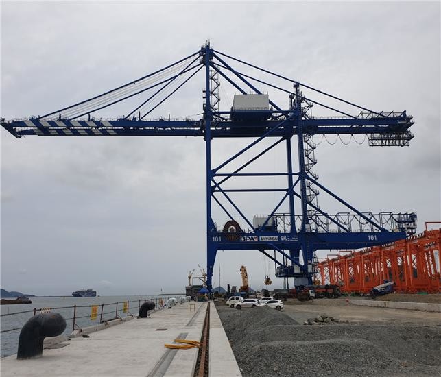 이번에 설치한 국산 컨테이너크레인은 네덜란드 로테르담항, 미국 롱비치항 등 선진항만에도 비교적 최근에 도입된 듀얼 트롤리형 원격조종 컨테이너크레인이다.