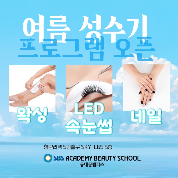 한편, SBS아카데미뷰티스쿨 동대문캠퍼스는 청량리역 5번 출구 도보 2분 거리에 리뉴얼 오픈 기념 이벤트를 진행 중이며, 자세한 내용은 공식 홈페이지 또는 유선 문의를 통해 확인이 가능하다.