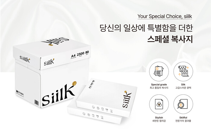 한편, 해당 행사에서 주력으로 선보인 실크(siilk)는 광택과 질감부터 남다른 고급 복사지로 최고 품질을 자랑하는 국내 유일 생산 복사지로, 용지가 견고하여 번짐 없이 깔끔한 결과물을 제공해 인쇄물의 품질을 한층 더 높여준다.