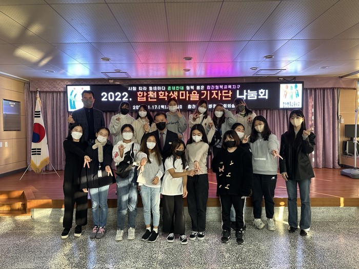 2022. 합천학생마을기자단 기자 학생들은 기자단 특성화 강의, 1:1 멘토링 활동 등의 언론, 방송, 마을활동 등의 과정을 거쳐 우리 학교 이야기, 합천 둘러보기, 합천 생각하기라는 주제로 합천에 관한 다양한 내용을 글과 영상으로 제작하고 이를 바탕으로 합천 지역의 다양한 소식을 전하였다.