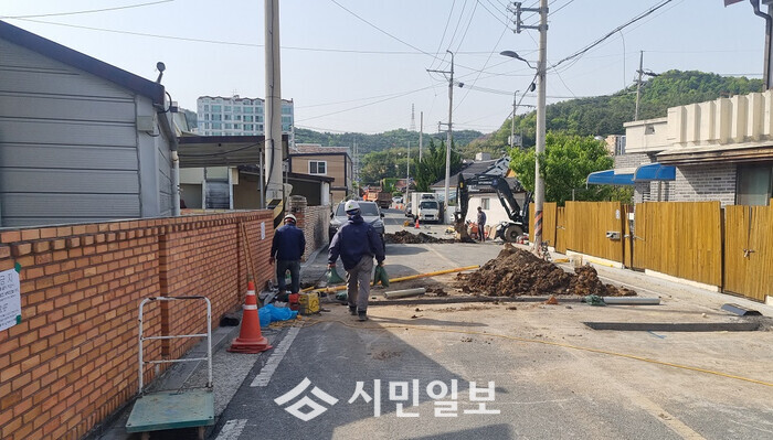▲ 도시가스 관로 설치 공사 모습 / 강진군 제공 |