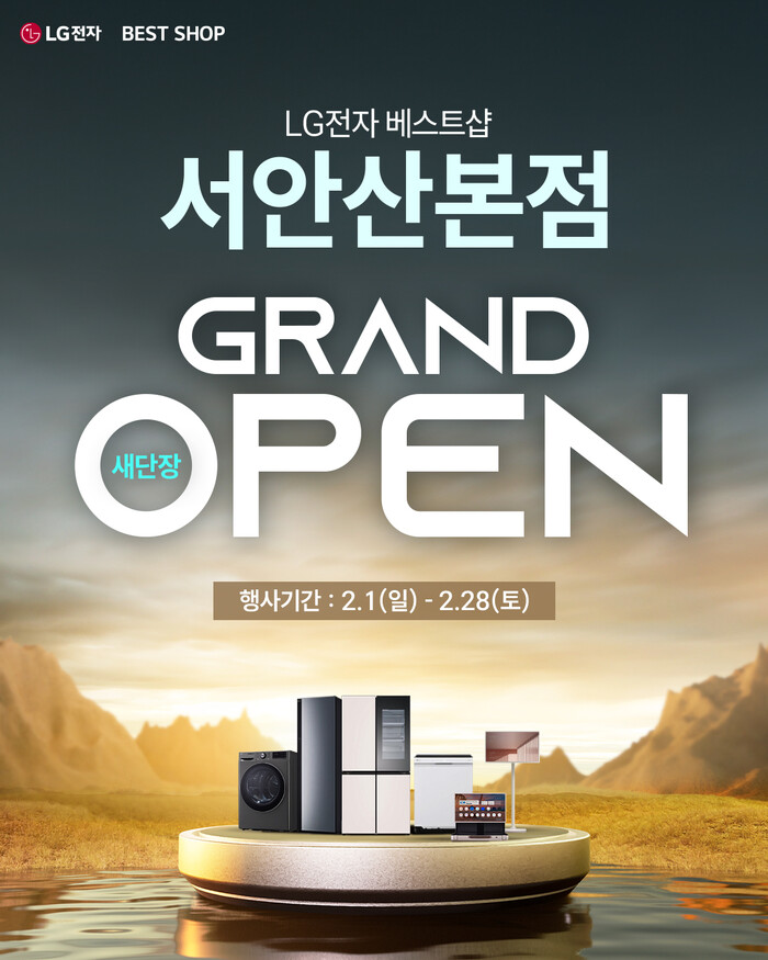 한편 LG전자 베스트샵 서안산본점 새단장 그랜드 오픈 행사와 관련한 자세한 내용은 매장 방문 및 상담을 통해 확인할 수 있다.