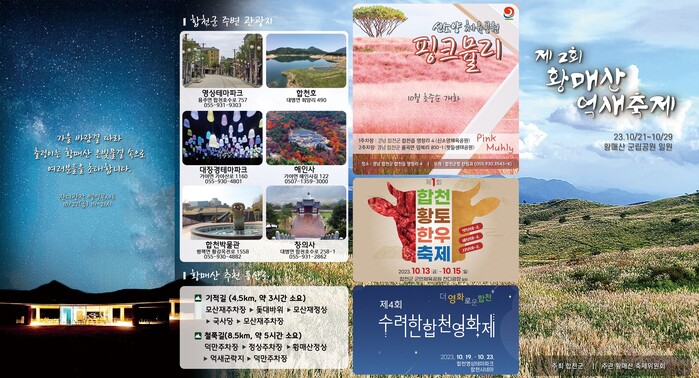 축제 관계자는 “가을 바람결 따라 출렁이는 황매산 은빛물결 속으로 초대한다”며 “축제 기간 황매산에 방문하시어 매혹적인 은빛물결 억새와 마련된 다채로운 프로그램과 함께 완연한 가을을 만끽하시기 바란다”고 전했다.