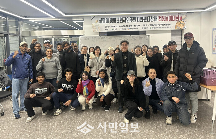 | ▲ 영암군 거주 외국인주민들이 지난 8일 외국인주민지원센터에서 열린 영암군전통놀이대회에 참여해 기념촬영을 하고 있다. / 영암군 제공 |