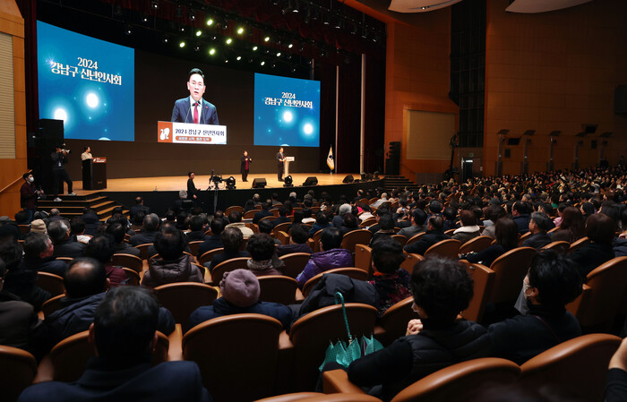 | ▲ 강남구 신년인사회에서 신년사를 경청하는 구민들.(사진=강남구청 제공) |