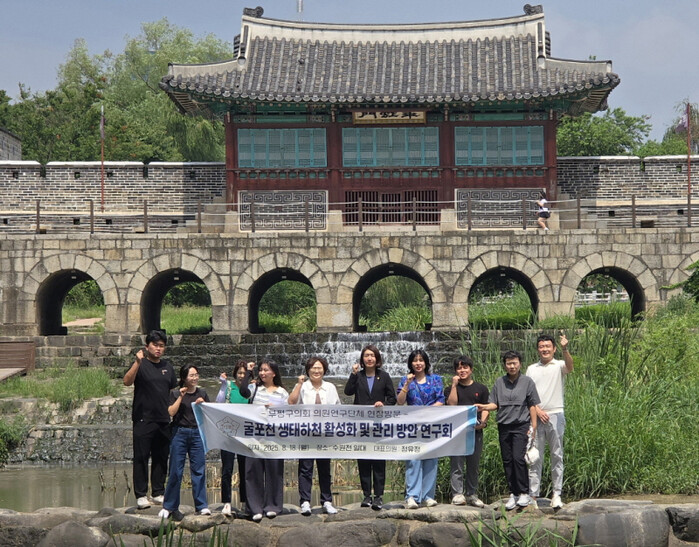 연구회 대표 의원인 정유정 의원과 정예지·김숙희 의원을 비롯해 연구용역 수행 연구원과 환경단체 등이 함께 참여했다. 이들은 수원천 복개 사업 관련 전문가를 초청, 현장 시설물을 둘러보며 해당 사업의 특성과 배경, 성과 등을 청취했다.