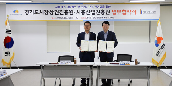 | ▲ 흥산업진흥원은 경기도시장상권진흥원과 지난 7월 22일 시흥시 지역 소상공인 지원 및 전통시장·골목상권 활성화를 위한 업무협약(MOU)을 체결했다 /사진제공=시흥산업진흥원 |