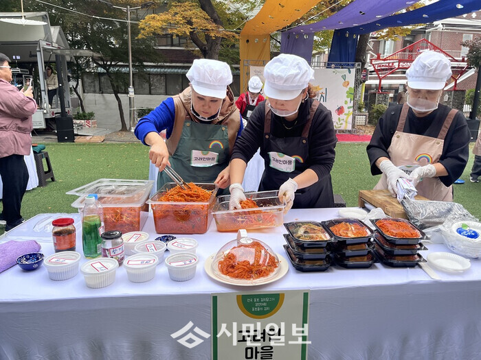 | ▲ 지난 8일 월곡동 다모아어린이공원에서 열린 ‘전국 동포 김치담그기 경연대회_동포들의 김치’ 본선에서 고려인마을 팀이 당근오징어 김치를 만들고 있다. / 광주광역시 광산구 제공 |